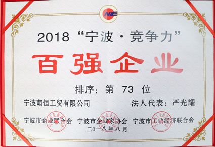 寧波市百強企業(yè)名單發(fā)布!萌恒榜上有名