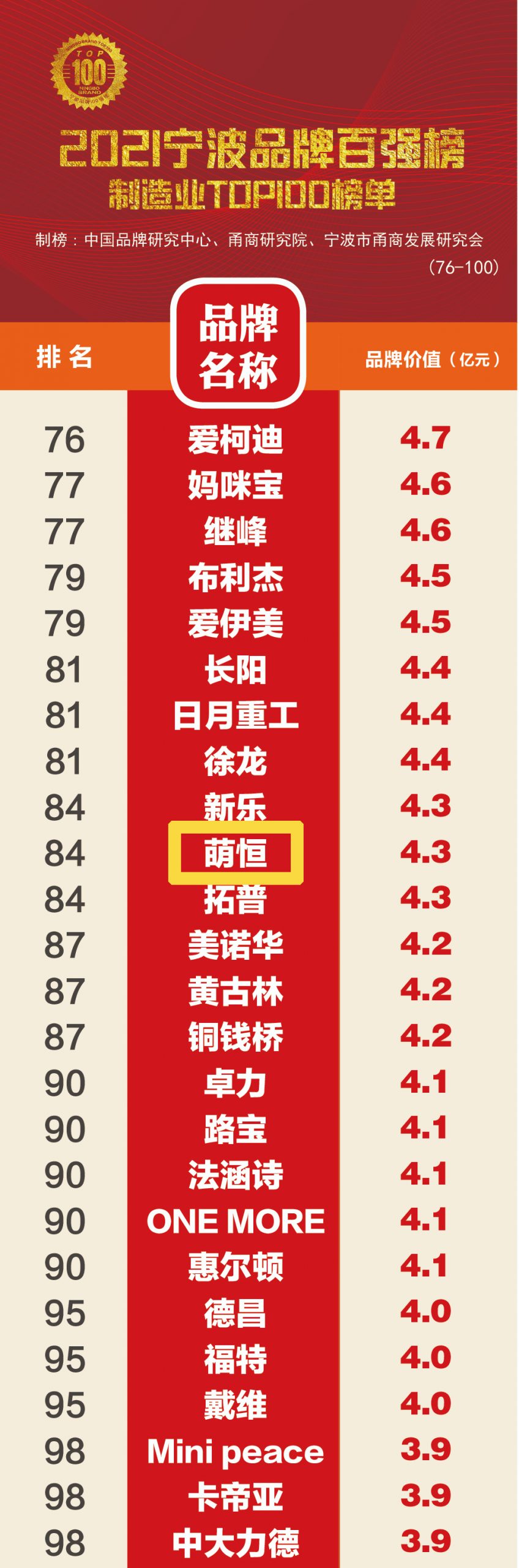 “寧波品牌奧斯卡”正式出爐,萌恒榮登2021寧波品牌百?gòu)?qiáng)榜