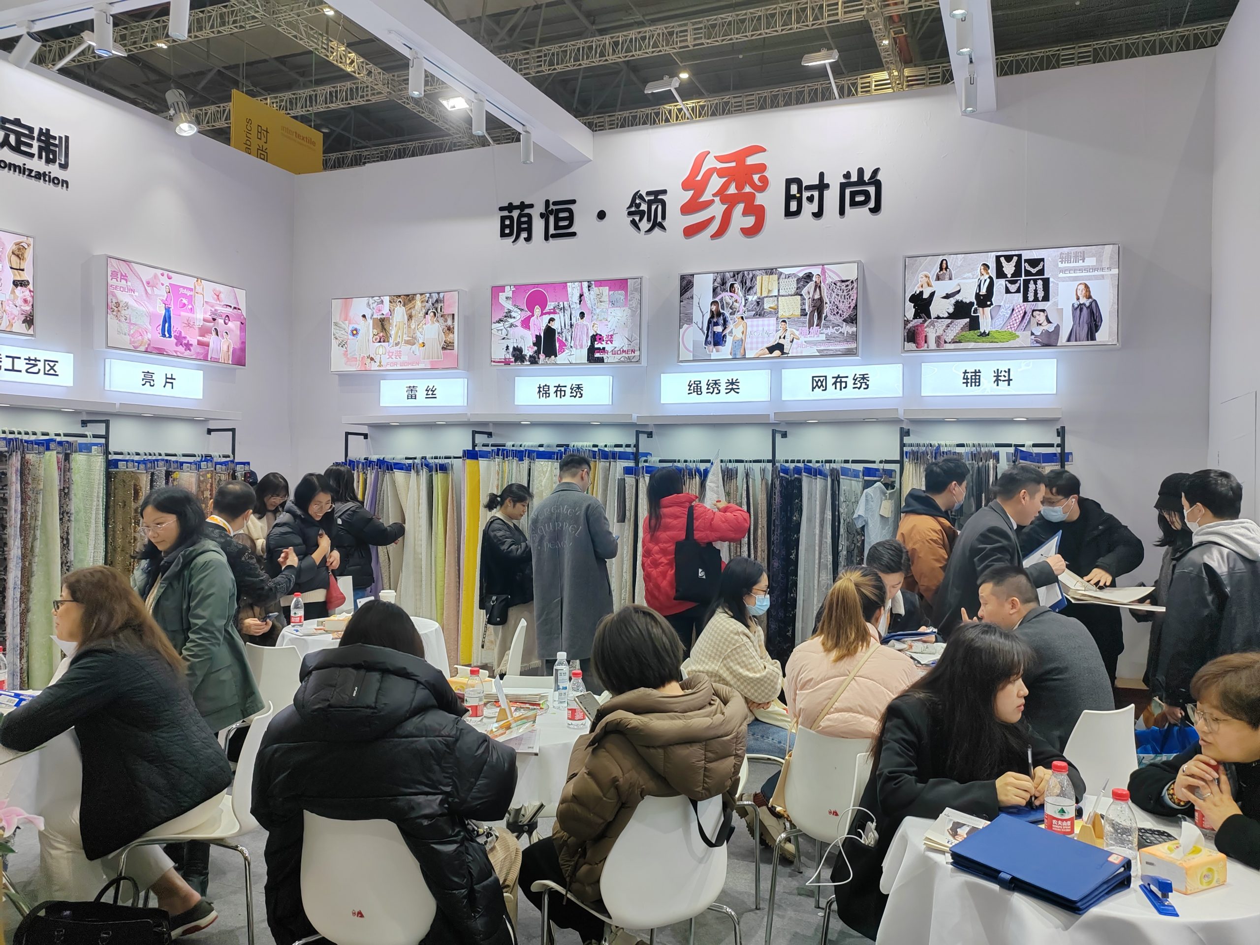 本次展會,我們主要展出了2025趨勢新品,囊括棉布繡、水溶繡、網布繡、內衣家紡、童裝、男裝、亮片、多工藝、繩繡等系列產品。簡約的展臺設計,精致的展品吸引了眾多客商駐足洽談。業務團隊熱情接待來訪客戶,認真傾聽客戶的訴求,耐心專業地回答客戶提出的各種問題,現場交流氛圍濃厚,客戶反響強烈。