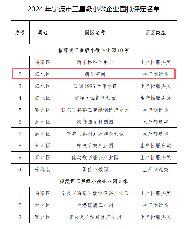 近日,寧波市三星級(jí)小微企業(yè)園名單公布,我司萌創(chuàng)空間順利通過區(qū)市兩級(jí)審核、評(píng)定,經(jīng)公示后成功入選。此次公布名單共包括10家小微企業(yè)園和3家復(fù)評(píng)小微企業(yè)園。