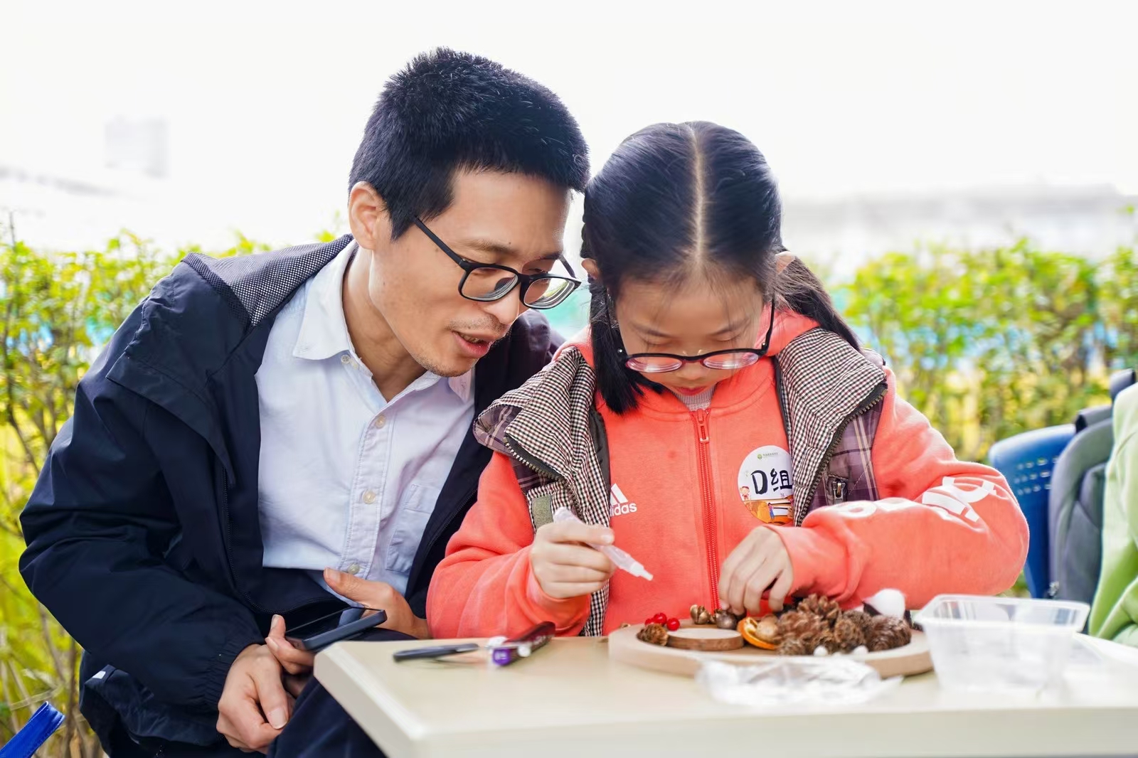 緊接著在“秋的定格”環(huán)節(jié)里,孩子們充分發(fā)揮自己的想象力與創(chuàng)造力,以干花、水稻等充滿秋日氣息的植物為素材,精心創(chuàng)作屬于自己的獨特藝術品。他們如同小小的藝術家,將對秋天的熱愛與感悟融入到每一個作品細節(jié)之中,或粘貼,或拼接,忙得不亦樂乎。不一會兒,一件件別具匠心的秋日藝術品便呈現(xiàn)在大家眼前,每一件都飽含著孩子們對大自然的贊美與秋收的喜悅。而暖意也在親子共同創(chuàng)作作品的過程中不斷涌動。