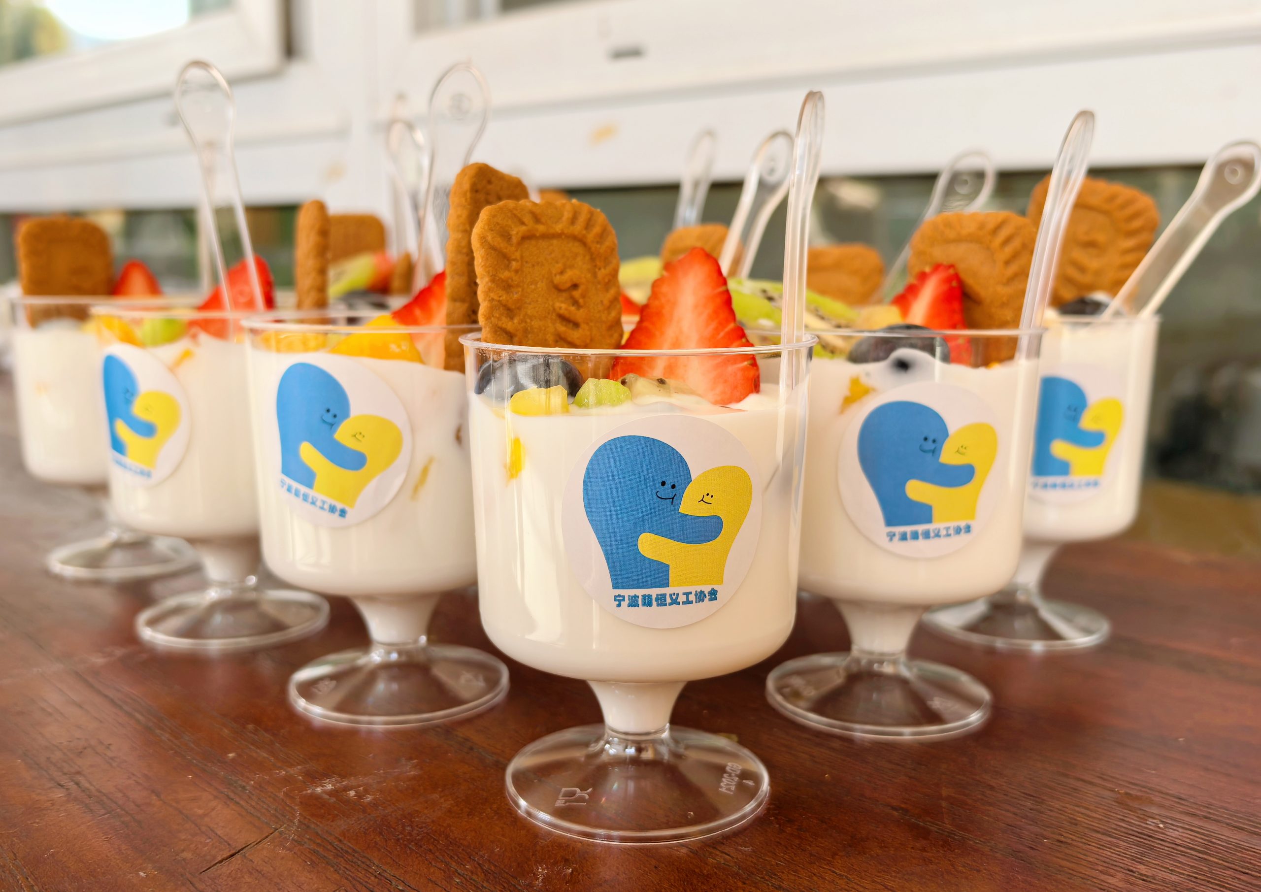 而在福利院的活動吧臺上,一場溫馨的手工制作正在進行。志愿者們用酸奶和各類新鮮水果,精心制作成一個個美味的酸奶杯,空氣中彌漫著清甜的果香。當孩子們接過酸奶杯,那一張張純真的小臉上瞬間洋溢出燦爛的笑容,如春日暖陽照亮了整個福利院,也溫暖了每一位志愿者的心。這場跨越言語的互動,讓簡單的酸奶杯化作愛的紐帶,將善意深深烙進每個人的心底。