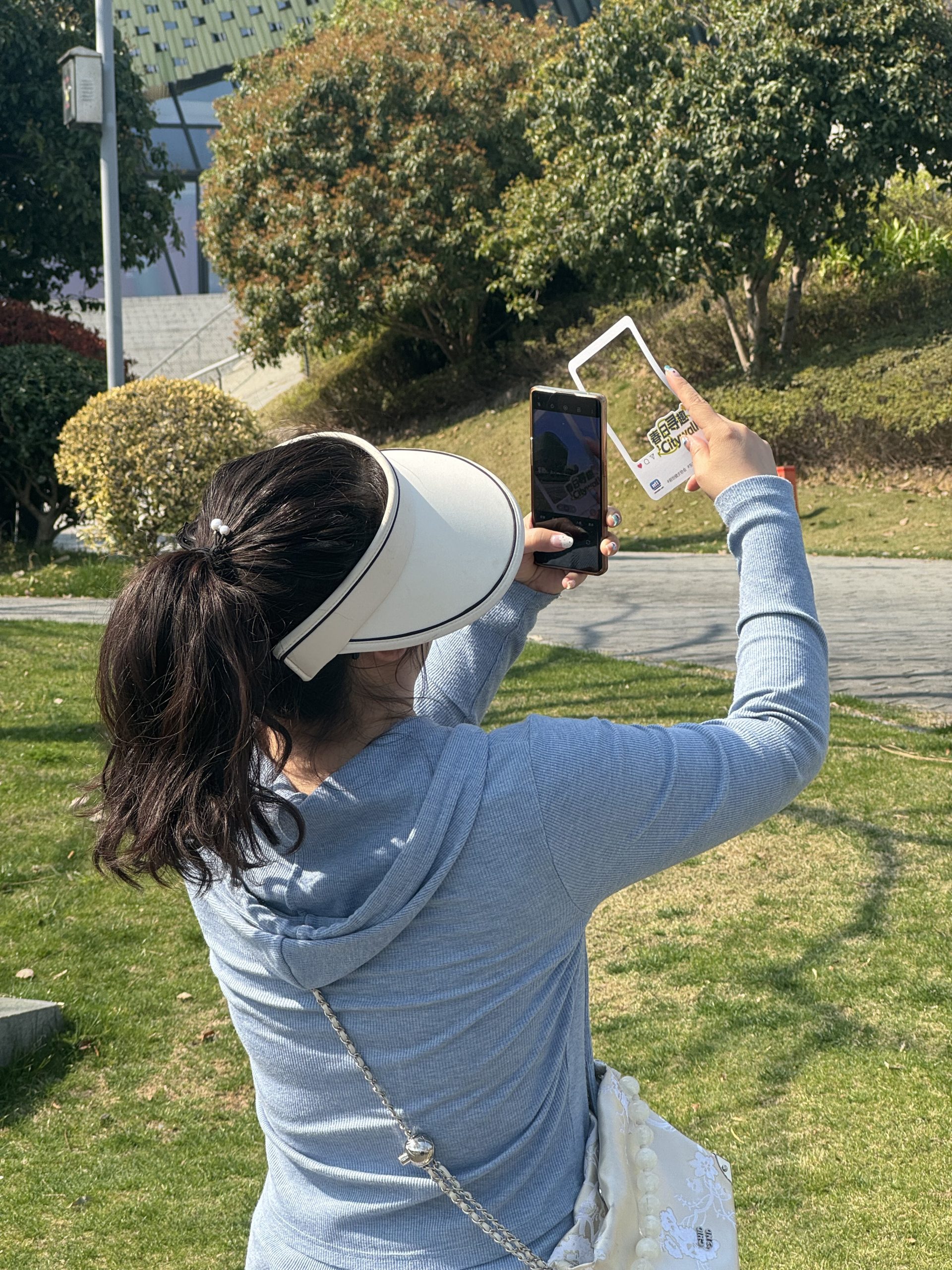 東部新城生態(tài)長(zhǎng)廊綠意盎然,小伙伴們分成6組,手持萌恒春日取景框明信片,開(kāi)啟6公里環(huán)線挑戰(zhàn)。 “萌趣動(dòng)物”捕捉靈動(dòng)生機(jī),成員們遇上城市動(dòng)物會(huì)客廳的羊駝、小浣熊、火雞、袋鼠,被萌得驚呼連連;“花漾時(shí)光”定格繽紛春色,油菜花、桃花、櫻花競(jìng)相綻放,成為鏡頭下的焦點(diǎn);“城市記憶”探尋建筑之美,甬圖的文化意蘊(yùn)與寧波中心的流線設(shè)計(jì)吸引眾人目光;終點(diǎn)前的“笑臉捕手”任務(wù),各組創(chuàng)意擺拍,手舉取景框的合照洋溢著團(tuán)隊(duì)的活力與默契。