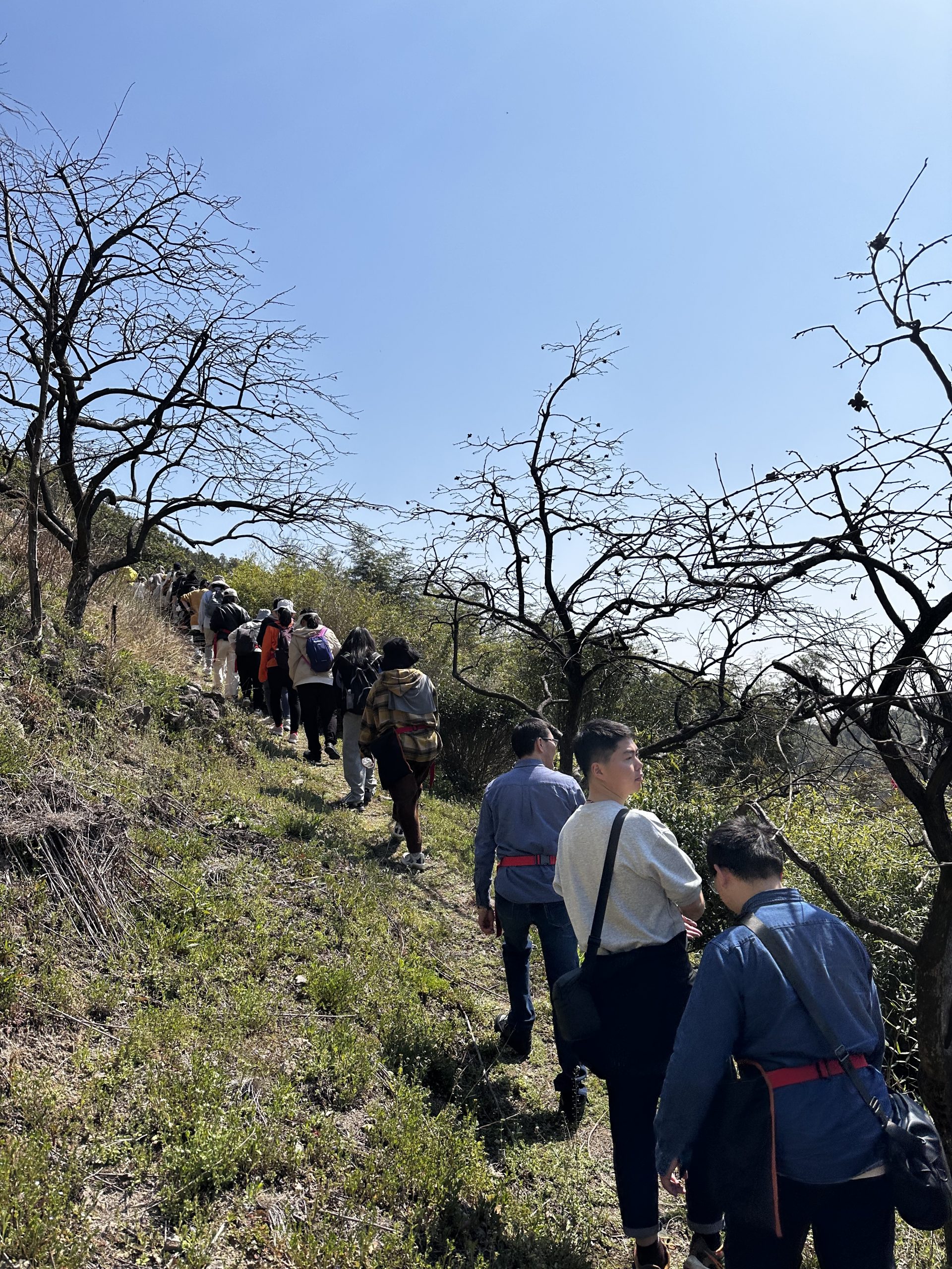 活動(dòng)伊始,大家齊聚在山腳下,眼前的小山坡雖不巍峨,卻滿是蓬勃的春之氣息。眾人結(jié)伴,向著坡頂進(jìn)發(fā)。一路上,歡聲笑語(yǔ)交織,大家一邊攀登,一邊欣賞著沿途的美景,嫩綠的新芽從樹(shù)枝間探出腦袋,不知名的野花肆意綻放,星星點(diǎn)點(diǎn)地散布在草叢中,為大地織就了一幅五彩斑斕的錦緞。