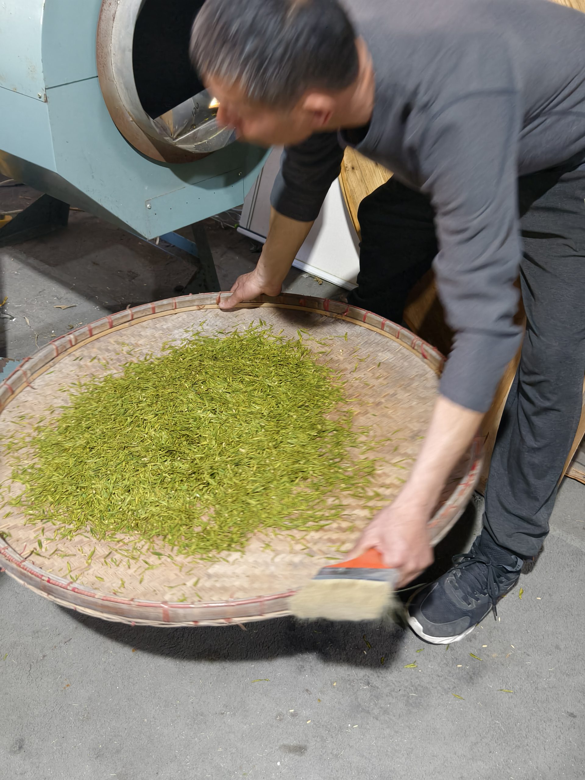到達(dá)山頂,一片嫩綠的茶園映入眼簾,漫山茶樹(shù)猶如綠色的波浪,在微風(fēng)中輕輕搖曳。大家瞬間被眼前的景象所吸引,迫不及待地投入到采茶的樂(lè)趣中。嫩綠的茶芽在指尖輕捻,每一片茶葉都承載著大家對(duì)自然的熱愛(ài)與對(duì)生活的期待,小伙伴們小心翼翼地采摘著,生怕破壞了這份春日里獨(dú)有的饋贈(zèng)。采摘結(jié)束,炒茶老師傅現(xiàn)場(chǎng)演示炒茶流程,從殺青到揉捻、干燥,手法嫻熟。在老師傅的指導(dǎo)下,大家紛紛上手,鍋中茶葉翻炒,茶香四溢。最終,大家收獲了親手制作的香醇新茶,成就感滿滿。?