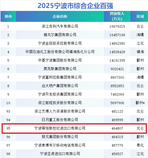 2025寧波企業百強榜發布,萌恒蟬聯雙榜!