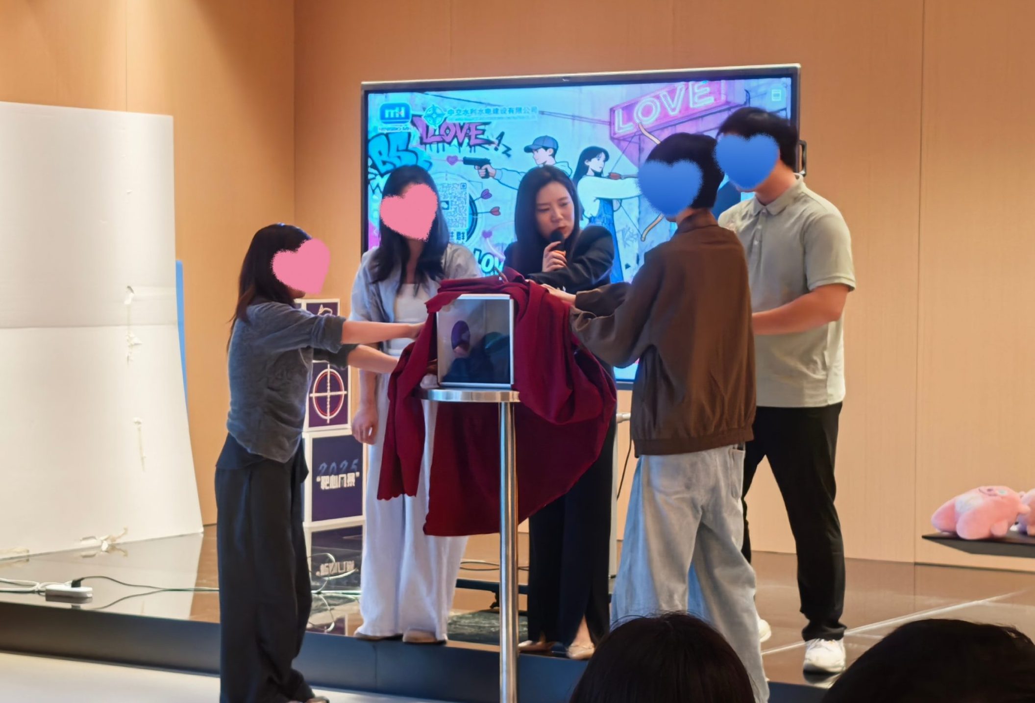 在冒著粉紅泡泡的現場氛圍中,“摸黑箱大挑戰”壓軸登場。主持人隨機點將,一男一女兩位特工攜手走上挑戰臺,將手伸入那充滿未知的黑箱時,全場屏住呼吸。默契是異口同聲,是會心一笑,也是兩顆年輕的心不斷縮短的距離。那一刻,信任與勇氣就是唯一的倚仗。