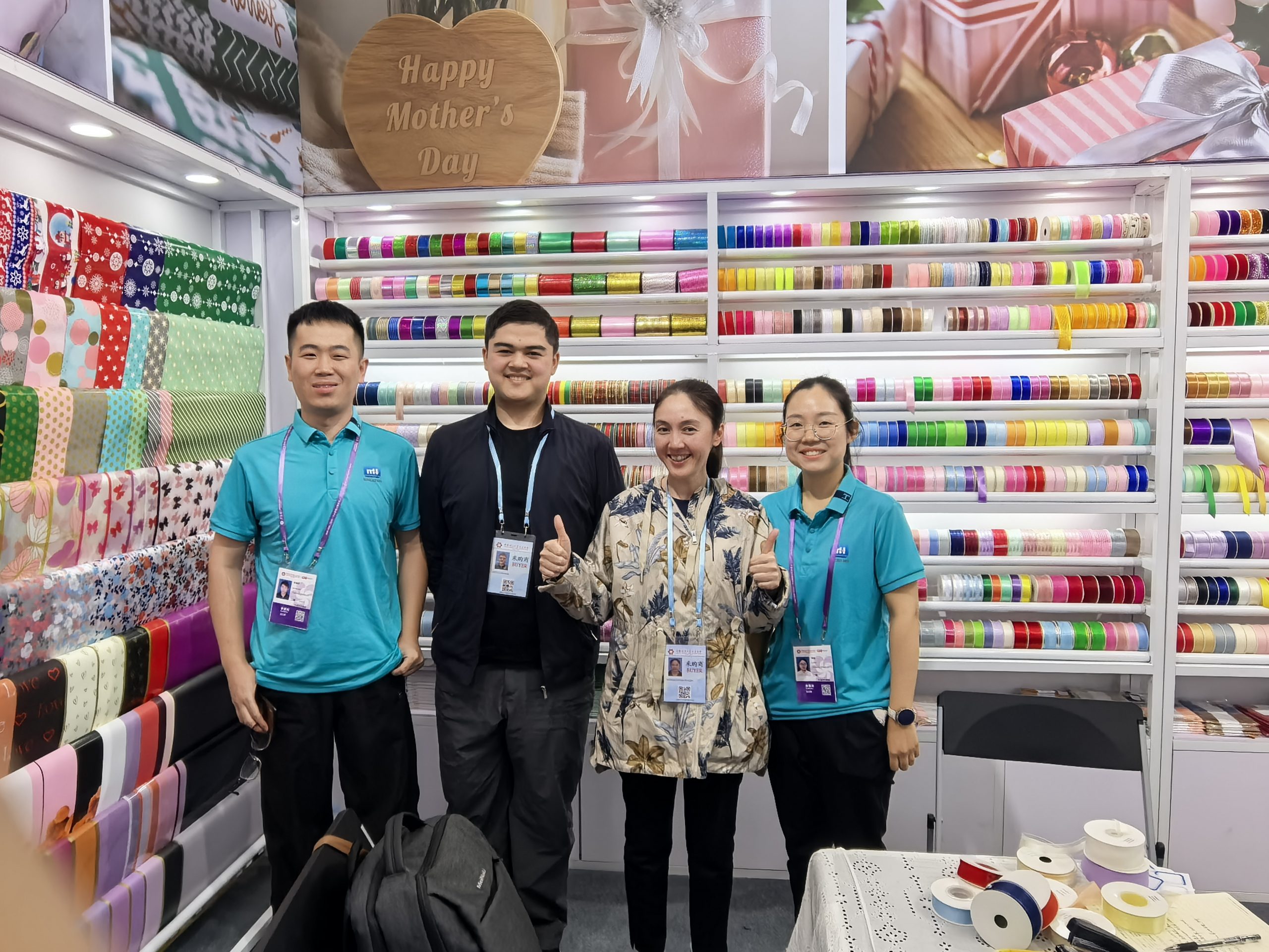 在為期五天的展期中,我司展位吸引了大量來自東歐、南歐、東南亞、中東及拉美等地區的客商駐足,人流量較為集中,洽談氣氛熱烈。除常規絲帶產品外,我司重點展示了TPU絲帶、超亮有光絲帶、全消光絲帶等30余種新品,其中非織絲帶產品因其獨特性能獲得客戶較高關注,有望成為市場新突破點。本次展位陳列產品跨度大、品類全,涵蓋包裝用繩帶及禮品裝飾材料,充分滿足客戶多樣化需求,展現了我司在供應鏈整合與產品創新方面的實力。