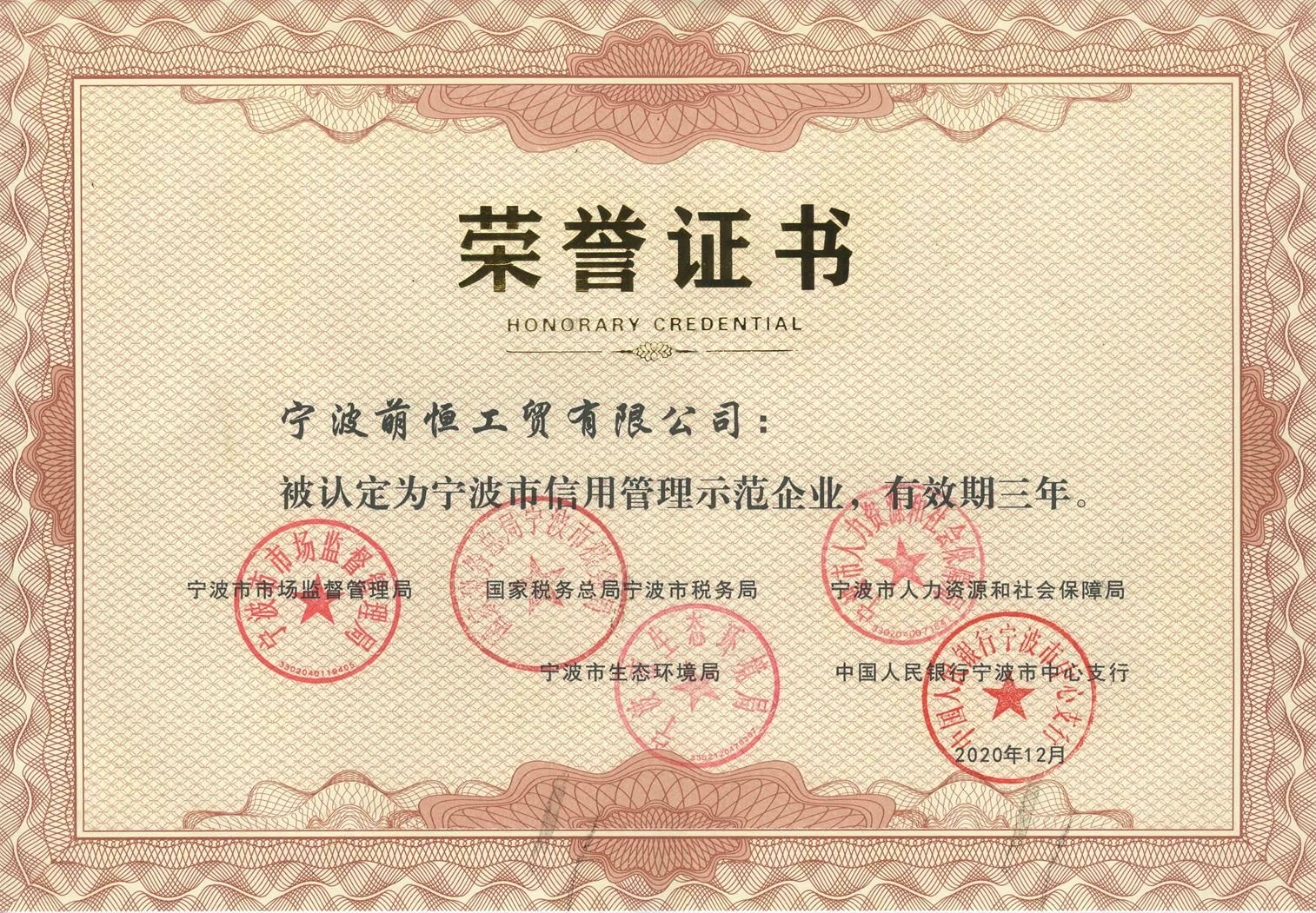 強(qiáng)化企業(yè)誠(chéng)信意識(shí) 加強(qiáng)企業(yè)信用建設(shè) 萌恒獲評(píng)“寧波市信用管理示范企業(yè)”