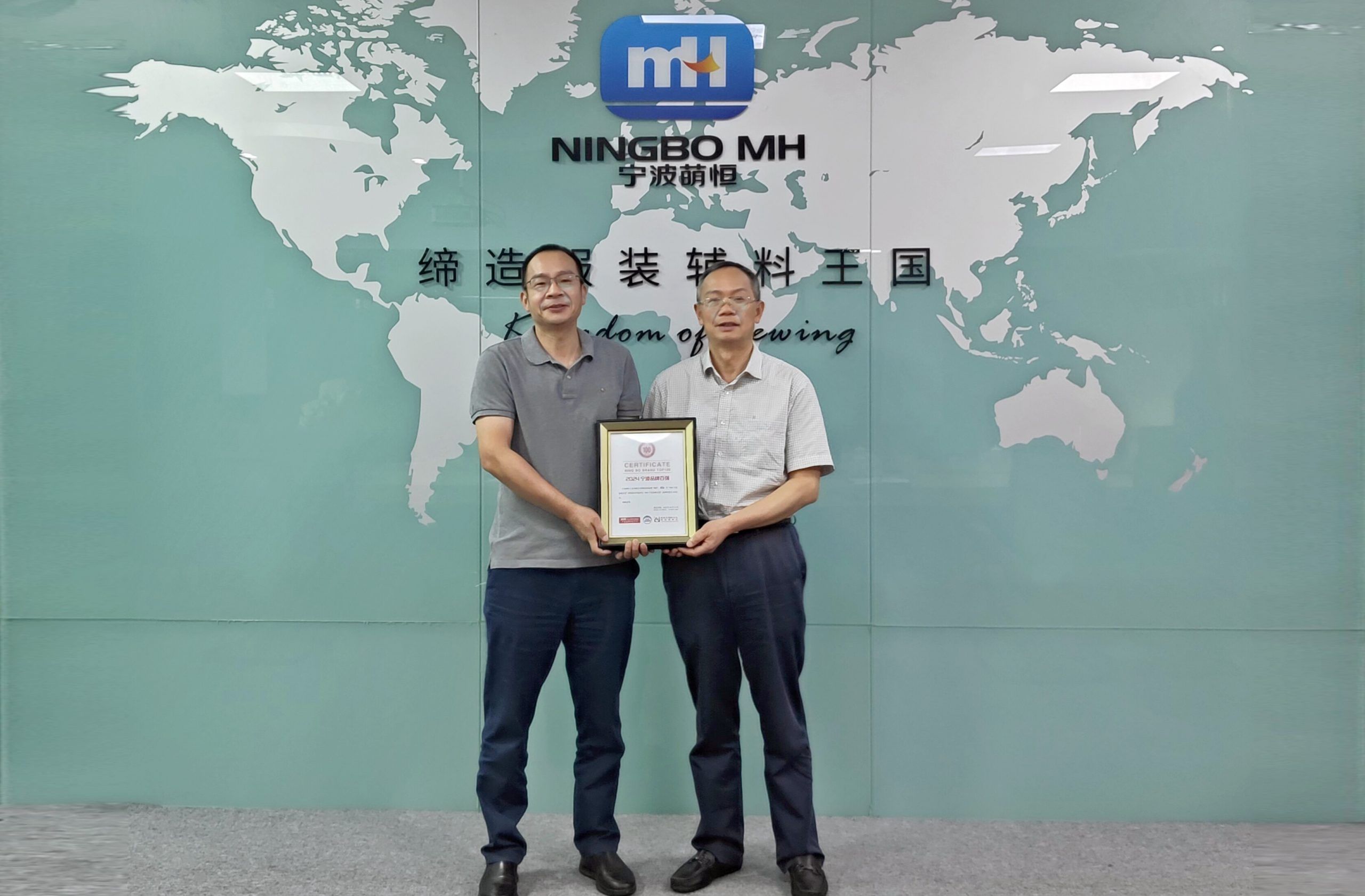 8月15日下午,十五屆市政協副主席、寧波市甬商發展研究會會長張明華一行蒞臨萌恒調研交流,并祝賀MH品牌以5億元品牌價值入選2024寧波品牌百強榜。國貿總經理陳昊及相關部門領導熱情接待。